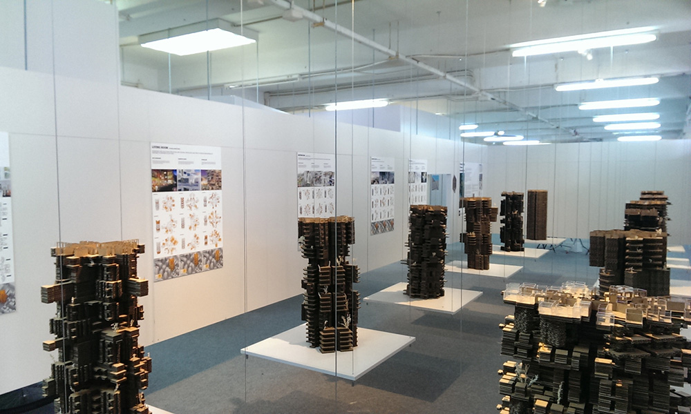 This exhibition at the 2013 Bi-City Biennale of Urbanism/ Architecture (UABB) in Shenzhen/ Hong Kong showed a collection of alternative residential tower typology design that can be understood as a first step to add more diversity to the Hong Kong housing market. It explores alternatives to find argumentation why diversity in tower typology could revitalize the city of Hong Kong, improve its living conditions and give a new boost to the housing market. This collection of models is a result of a semester’s exploration by 23 students in the Master of Architecture in the Department of Architecture of the University of Hong Kong from September to December of 2013.